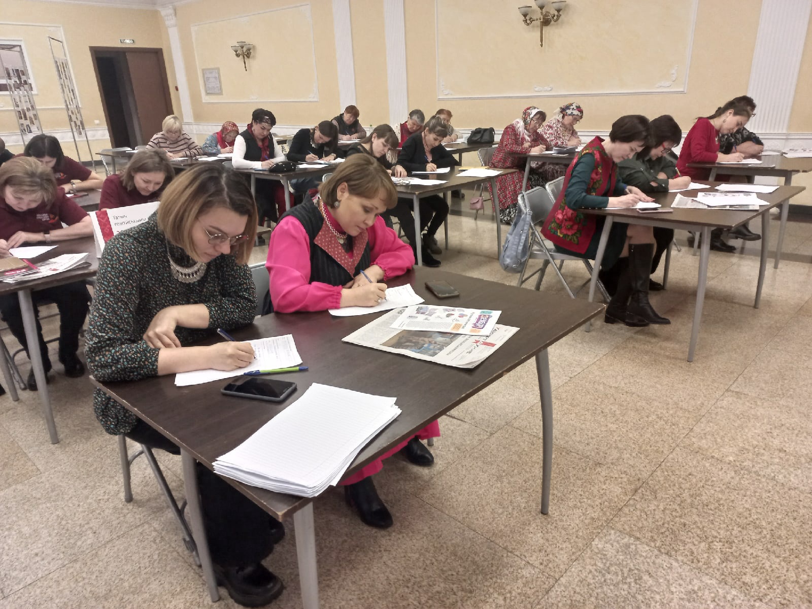 Кроме этого, текст диктанта прозвучал в эфирах радио и телевидения. Так, на телеканале «Удмуртия» свои знания проверяли заслуженная артистка республики Светлана Зубкова и директор театра фольклорной песни и танца «Айкай» Петр Данилов, а на радио «Моя Удмуртия» диктант писали в компании артистов Национального театра Удмуртии Вадима Дмитриева и Марины Самсоновой, а также министра национальной политики республики Эдуарда Петрова.